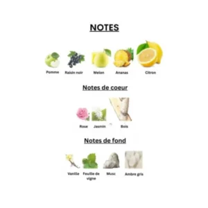 Un boisé cuiré élégant et magnétique, où la fraîcheur fruitée s’équilibre avec un cœur chaud et une base ambrée sensuelle. Une signature affirmée, pensée pour l’homme charismatique qui domine la nuit avec confiance.
